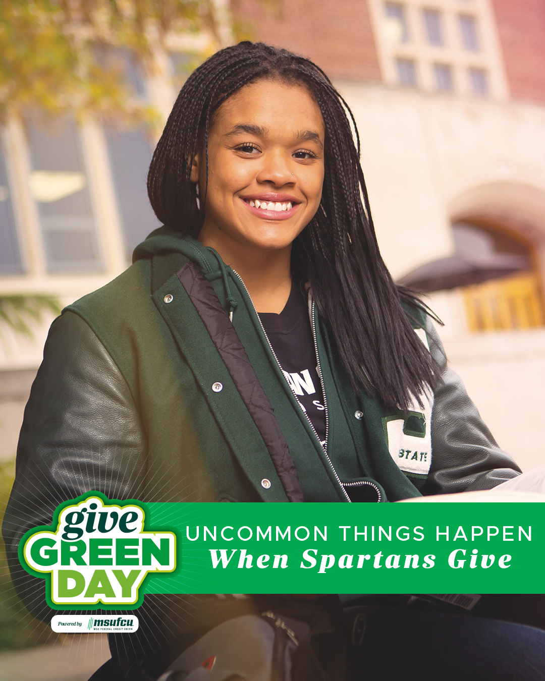 Help spread the word about Give Green Day. Update your Facebook page with the images below and use #GiveGreenDay to share what you’re doing to make a difference for current and future Spartans.